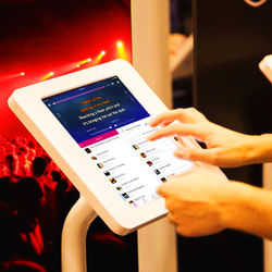Your guests can search, explore genres, or type in their own songs on the touchscreen kiosk when they’re at the mic. In addition, they can let us know in advance and we’ll have their song waiting for them when they get on stage. We have remote access to the kiosk and can even add singer’s names to the playlist so they know whose song is whose - plus customize their pitch and tempo.